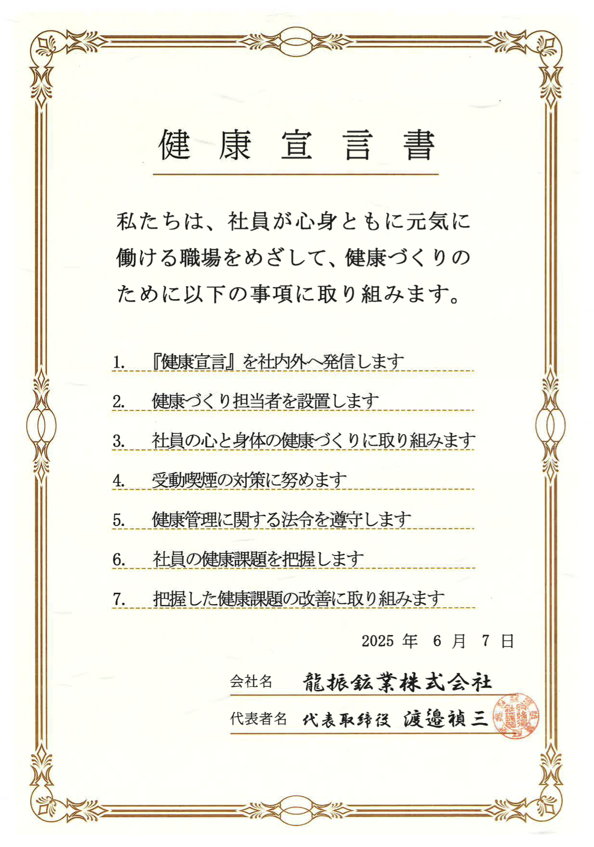 健康宣言書について掲載します!